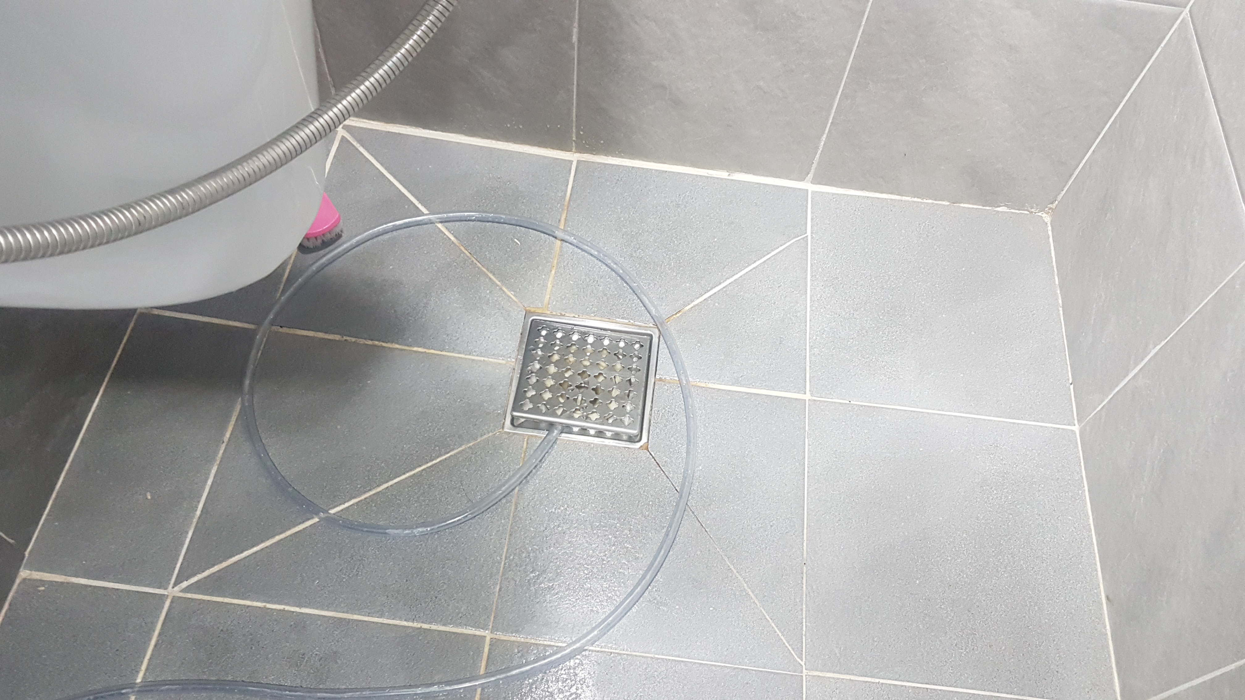 그리고 내린물과 함께 강아지 쉬야가 내려가는 호스는 바로 화장실 하수구로 바로 내려가도록 호스를 빼두었습니다