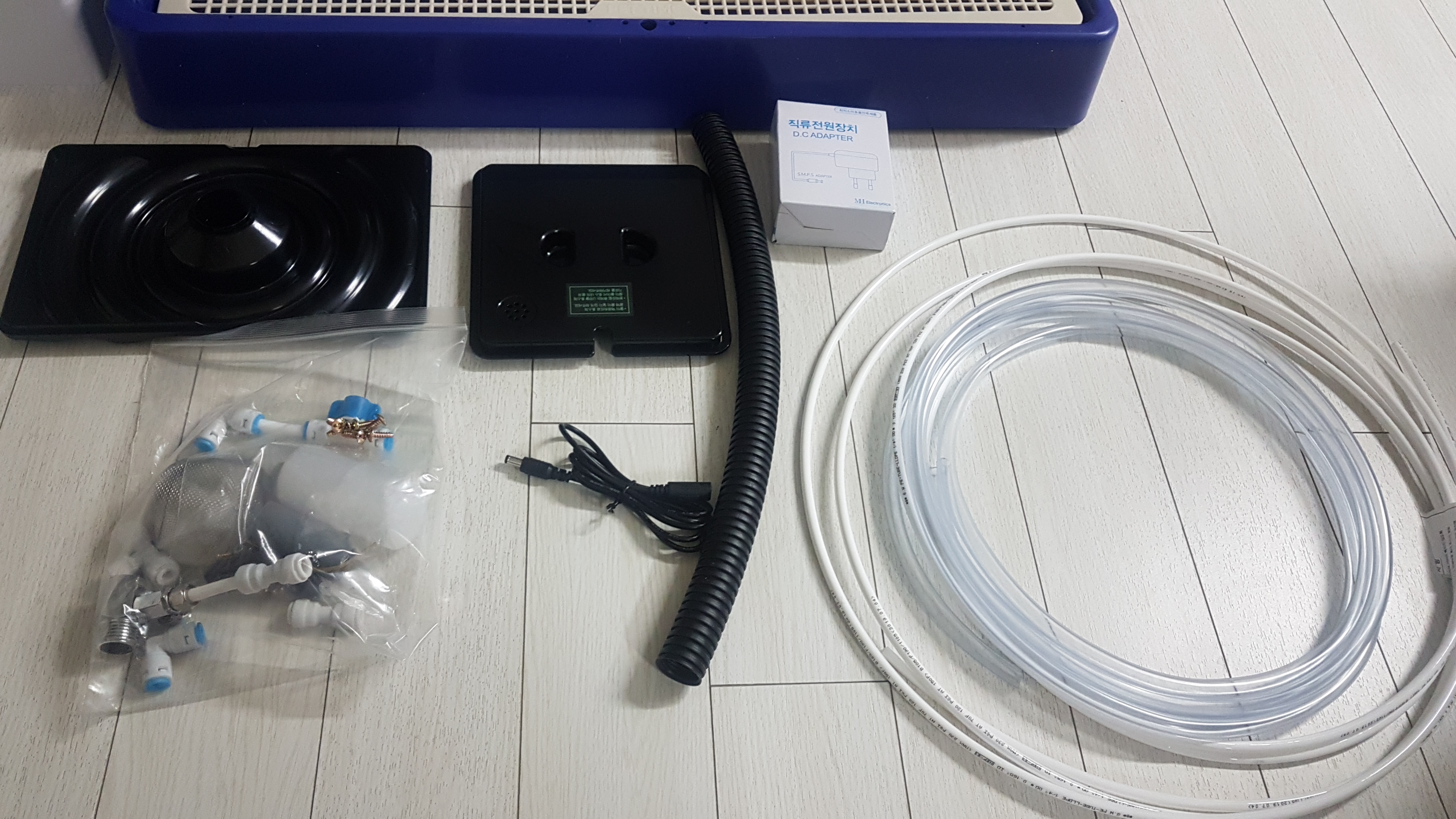 그외 부품들과 뚜껑 연결 호스등이 들어있습니다 처음 배변판 뒷쪽부터 설치를 시작해야 합니다