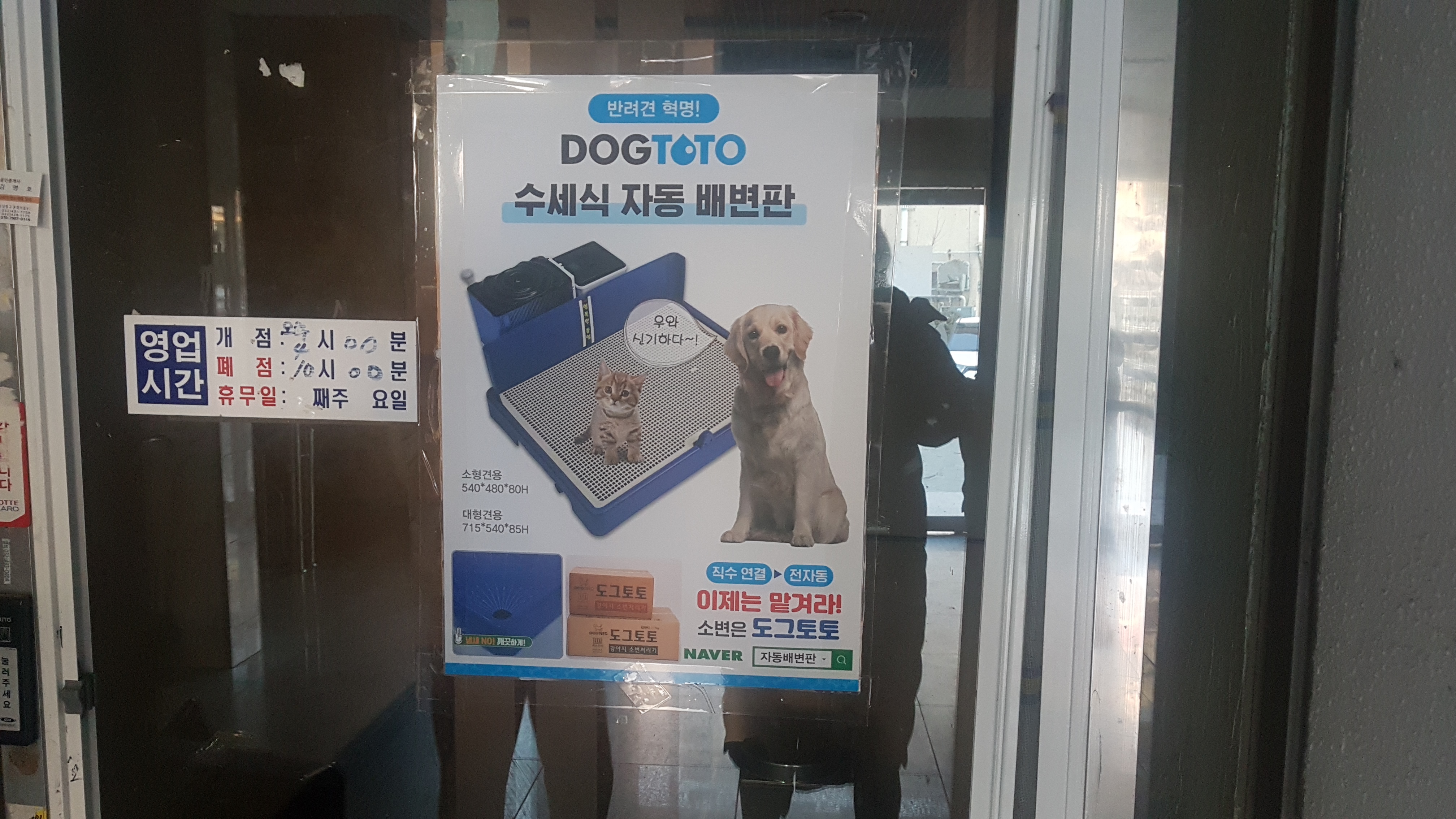 이고민을 한번에 해결해 줄 제품이 있었으니 바로 수세식 자동 배변판 도그토토입니다! 막연히 이런게 있으면 좋지 않을까 하고 검색을 해보았는데 벌써 상품화 되어 판매가 되고 있었습니다 홈쇼핑에서도 나왔었네요 판매처에 전화해보니 멀지 않은 곳에 있어서 저는 직접방문해서 구매했습니다