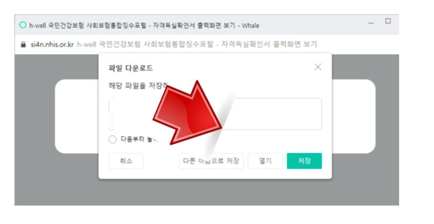 건강보험 자격득실 확인서 PDF파일로 다운받아 저장합니다. 그리고 이 파일을 열어보기 위해서는 자동적으로 암호가 걸려 있습니다. 위의 팝업창에도 나왔듯이 정보보호를 위해 암호화 처리 되었으며 이 비밀번호는 개인인 경우는 생년월일입니다 사업자인 경우는 사업자번호입니다. 만약 출력을 할 수 없는 상황이라면 파일을 다운로드 후 저장하시면 됩니다