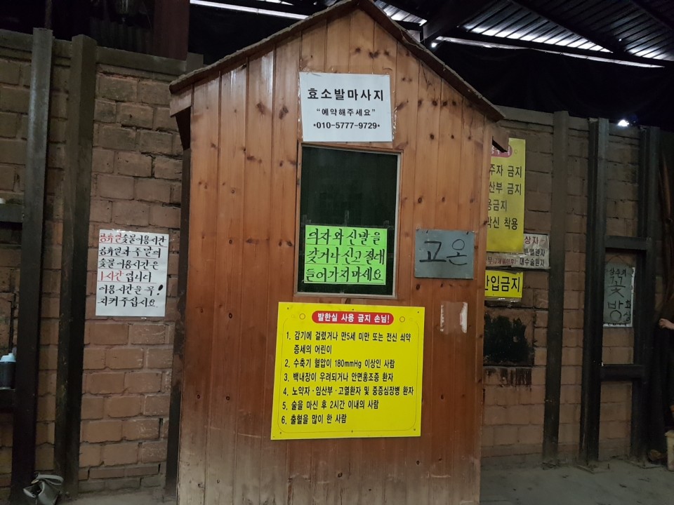 중온방 고온방 꽃방 웰빙방이 총 4가지 방이 있습니다 중온방은 온도가 낮아서 땀이 별로 나지 않았고 저는 중온과 고온사이 온도인 웰빙방이 딱 좋았습니다 웰빙방에 관리자 분이 들어와서 중간중간 바닥에 물을 뿌려 주시는데 건조하지 않아 더 좋았던것 같습니다