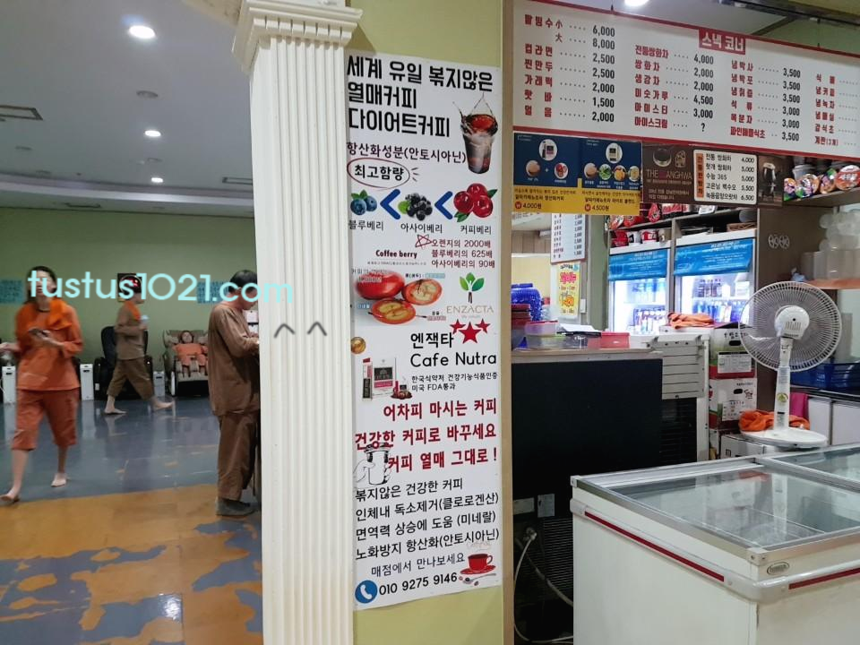 다른곳과는 달리 불편했던점은 여자탈의실이 2층인데 신발장도 2층에 있어서 계산후 신발까지 가지고 올라가야 했습니다 별거 아니지만 방문한 날 비가 내리고 있어서 개인적으로 조금 불편했습니다 찜질복 갈아입은후 다시 1층 내려와서 카운터 옆으로 보시면 숯가마로 들어가는 입구가 있습니다