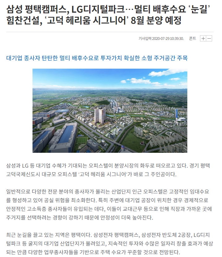 삼성 평택캠퍼스, LG디지털파크…멀티 배후수요 ‘눈길’ 힘찬건설, ‘고덕 헤리움 시그니어’ 8