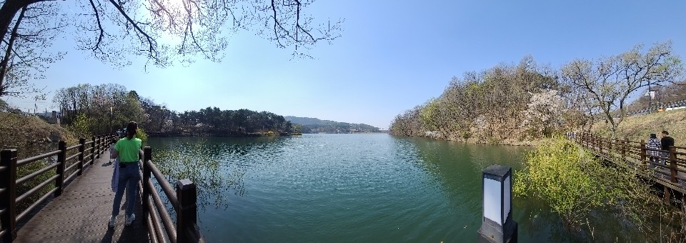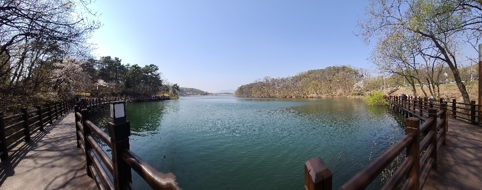 파노라마로 촬영해 저수지를 사진한장에 담아 보았습니다 하늘도 깨끗하니 너무 이쁜날이었습니다