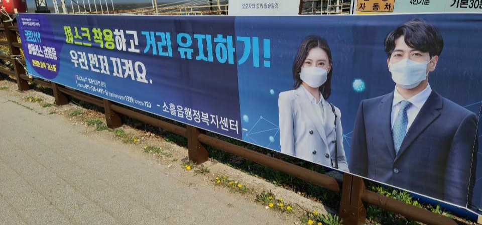 요즘 사외적거리두기로 사람이 많이 모이는 장소는 폐쇠되어 운영되지 않는데 고모리둘레길 산책길에는 마스크착용하고 거리유지하라는 현수막이 곳곳에 걸려있었습니다