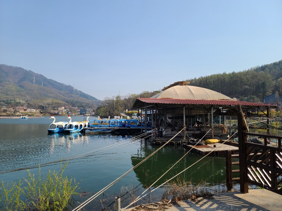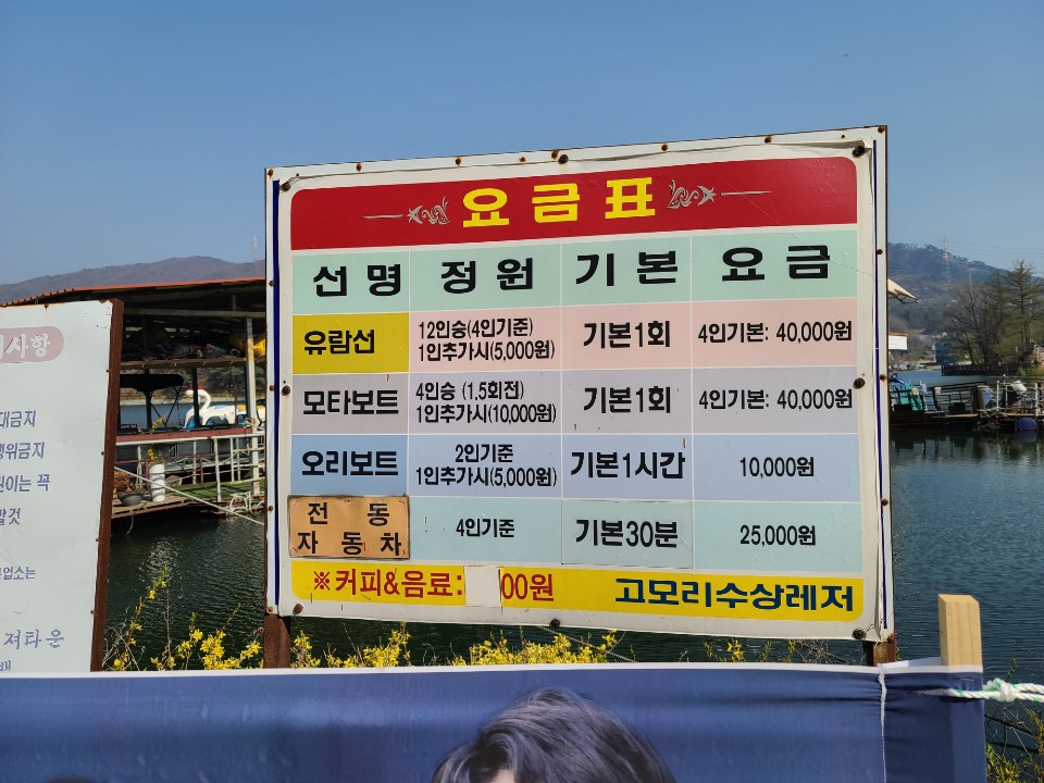 고모리 수상레저에 도착했습니다 세월의 흔적이 느껴지는 안내판이네요 오리보트를 타시는 분들이 두팀정도 있었는데 오리보트보니 왠지 추억돋는 이유는 뭘까요 호수가 생각보다 많이 넓어서 모타보트를 타는게 어떨까 하는 생각을 잠깐 해보았지만 타지는 않고 돌아왔습니다