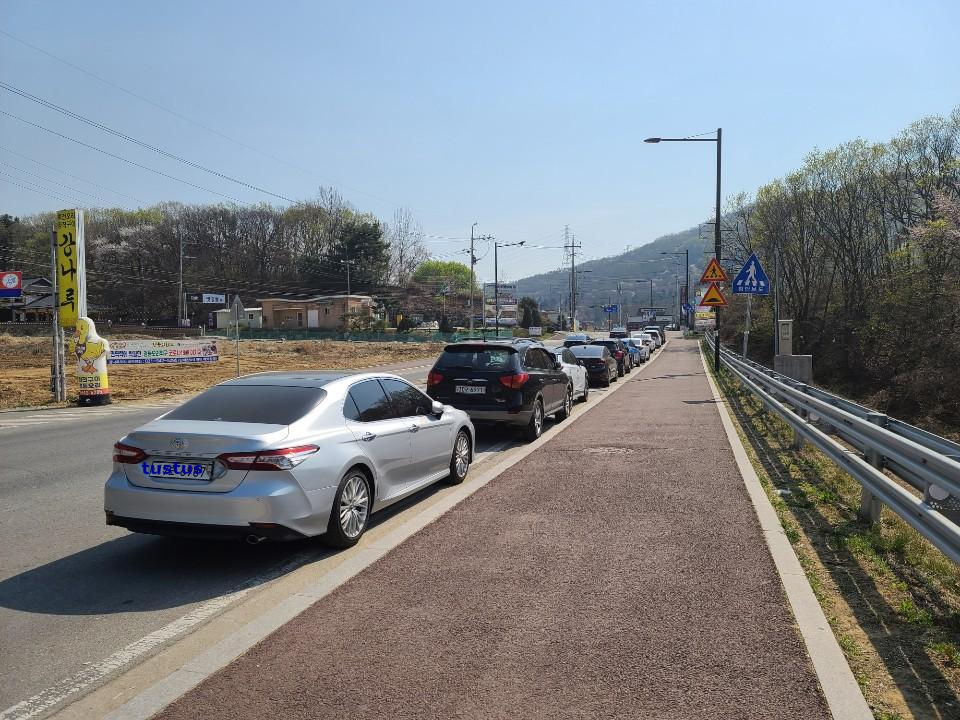 식당과 카페에 주차장들이 있지만 우선 산책을 즐기러 찾은 저수지였기에 갓길에 일렬로 주차되어있는 차들 속에 주차를 했습니다 서울이였으면 바로 딱지를 끊었겠지만 한시간 가량 산책을 하고 나왔지만 단속은 없었습니다 고모호수공원에 주차장이 있다고 하니 그곳에 안전하게 주차를 하시길 바랍니다