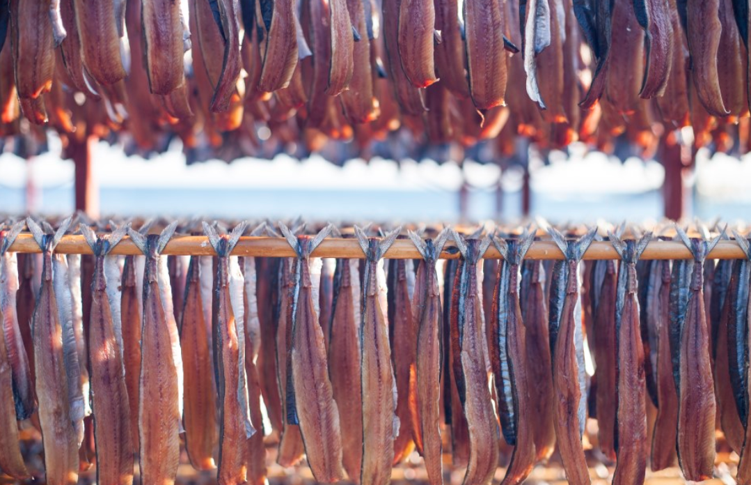 과메기는 겨울철에 3~10일가량 청어나 꽁치를 얼렸다 녹였다 반복하면서 그늘에 말려 반 건조시킨 생선입니다 해풍에 말리기 때문에 꼬독고독한 식감이 매우 매력적입니다 바다바람과 따뜻한 햇볕 아래서 오랜 기다림과 정성으로 만든 음식인 과메기 명칭은 청어의 눈을 꼬챙이로 꿰어 말렸다는 관목에서 유래되었다고 하네요 '목'을 구룡포 방언으로 '메기'라고 발음해 '관목'이 '관메기'로 변하고 여기서 다시 'ㄴ'이 탈락하면서 '과메기'로 굳어 졌다고 합니다