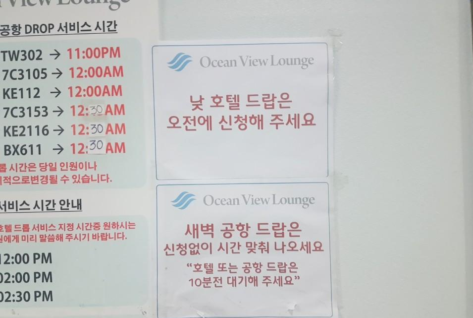 오션뷰라운지 공항드랍시간 어떻게 되나요 ?