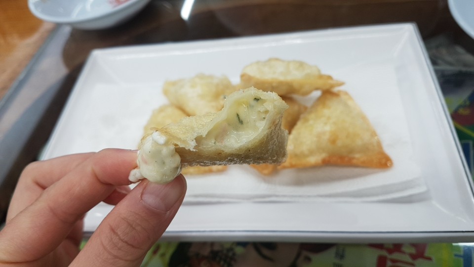 사이드로 시킨 치즈 만두는 만두라기 보다는 튀김의 느낌이었는데 안에 치즈가 많이 들어있어서 매콤한 비빔국수랑은 궁합이 잘맞았습니다