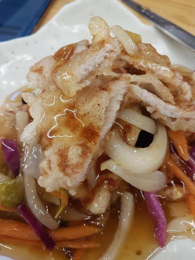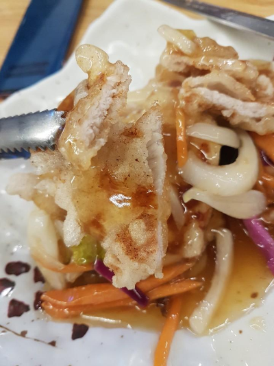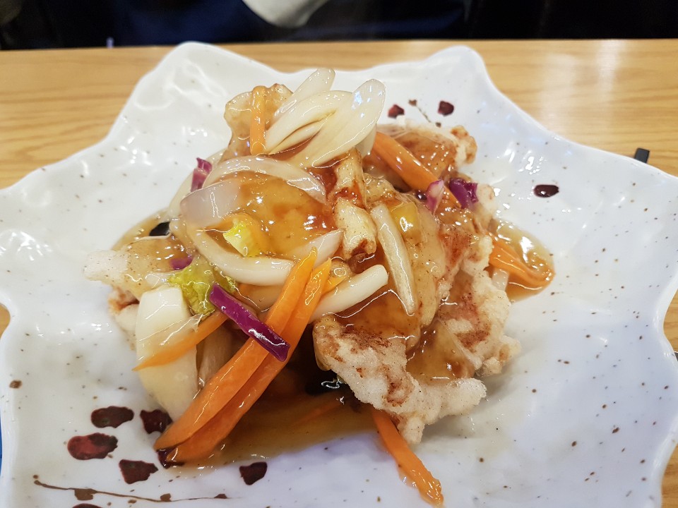 찹쌀 탕수육은 부먹으로 나옵니다 안에 고기도 신선한 편이고 비릿내도 나지 않습니다 찹쌀도 쫀득해서 식감도 괜찮은 편입니다