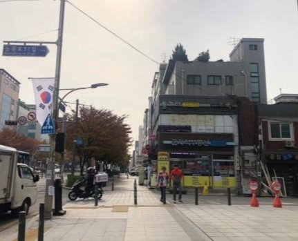 계속 올라 가시다 보면 GS 편의점이 나오는데 그옆에 있습니다 올라가는 방향기준으로 왼편은 도로 오른편에 가게가 위치합니다 건물 앞 주차 2대 가능 하고 자리가 없을 시 골목주차 하시면 됩니다