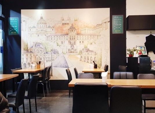 가게 내부는 아담한 편입니다 식사시간엔 항상 손님이 많이 계시는데요 저녁시간에는 대기하시는 분도 계십니다 손님이 많이 계셔도 테이블 회전이 빠른 편이라 자리는 금방 나기때문에 웨이팅까지 생각하고 가셔야 하는 정도는 아닙니다