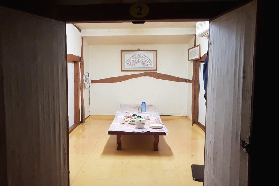 비가 많이 내려서 살짝 쌀쌀 했는데 난방시설을 누르니 방이 금방 따뜻해졌습니다 마치 여행 온 듯한 느낌을 받았습니다 주인 아주머니께서 이 자리에서 장사하신지 진짜 오래 되었다고 하시던데 감골가든은 SNS 사이에서 유명한 가게는 아니지만 장안사에 오시는 분들, 등산객 분들에게는 이미 아는 사람들은 다 아는 맛집이라고 합니다
