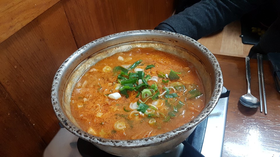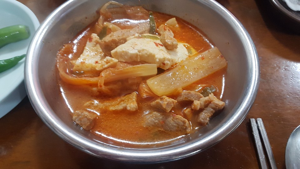 재료가 아낌 없이 들어가 있고 특히 고기가 많이 들어있었습니다 그리고 김치도 제대로 숙성시켰는지 별다른 양념맛이 아니었지만 국물이 깔끔하고 맛있었습니다