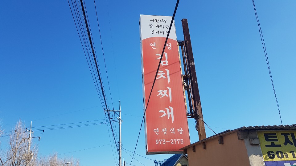 무봤나? 쌈 싸먹는 김치찌개!! 연정김치찌개! 궁금했습니다 쌈싸먹는 김치찌개라.... 김해공항근처에 볼일이 있어 갔다가 티맵추천에 뜬 이곳이 왠지 궁금해서 가보았습니다 김해공항 바로 앞에 있는 식당은 아니고 찾아가보니 한적한 곳에 근처에 드문드문 식당이 있는데 여기에 맛집이 어디에 있을까 눈을 크게 뜨고 찾아가 보았습니다 특별한 것은 없어보이는 약간은 시간의 흔적이 느껴지는 식당입니다 주차공간은 앞에 3대정도 할수 있을 정도로 협소한 편이네요 그런데 주변에 차가 많이 없어서 대충 주차를 해도 될듯 보여서 앞에 주차를 하고 들어가 보았습니다