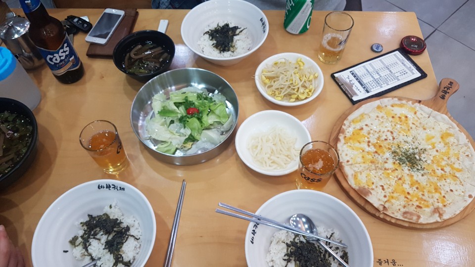 맵싹한 쭈꾸미와 피자를 따로따로 맛보아도 만족스럽고 김가루 뿌려진 밥에 무생채와 콩나물과 비벼먹으니 매콤해서 밥한그릇 뚝딱 할 수 있었던 곳! 요즘 피자와 쭈꾸미 피자와 낙지 등이 함께 나오는 집이 유행처럼 생겼다가 없어지는것 같았는데 오랜만에 두가지 맛을 동시에 느끼고 나온 바보형제쭈꾸미집 김해삼계동맛집이라 해도 손색이 없을것 같습니다