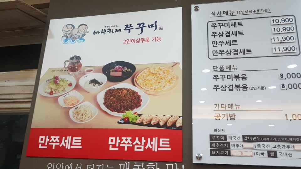 쭈꾸미는 태국산 갈비만두와 쌀은 국내산 김치는 중국산 돼지고기 미국산을 사용합니다