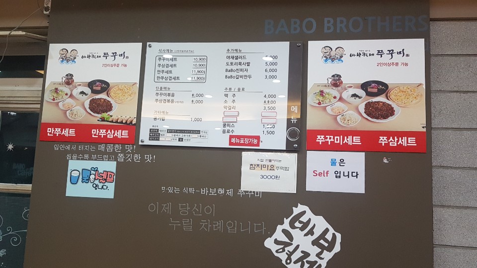 김해삼계동맛집 바보형제쭈꾸미 메뉴 가격 볼까요?