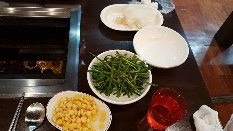 옥수수콘도 오래되지 않은 신선한 녀석이 나왔습니다 부추도 금방 버무려져 나왔는지 신선하고 맛있습니다
