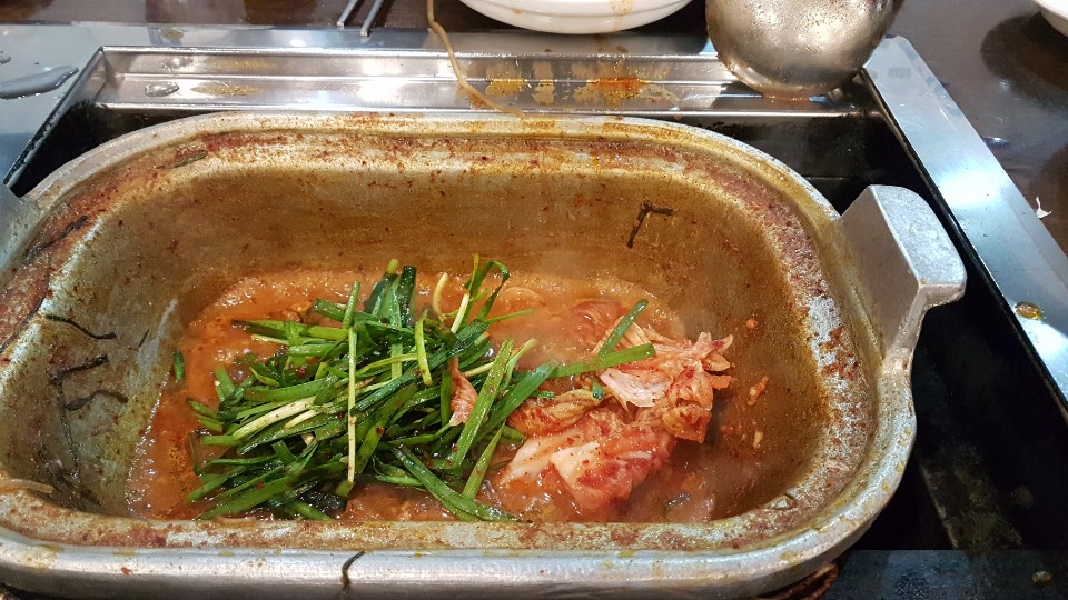 중간에 육수를 더 가져다 주셨습니다 깻잎을 요청드려서 중간쯤 육수와 깻잎을 투하시켜 끓여 먹었습니다