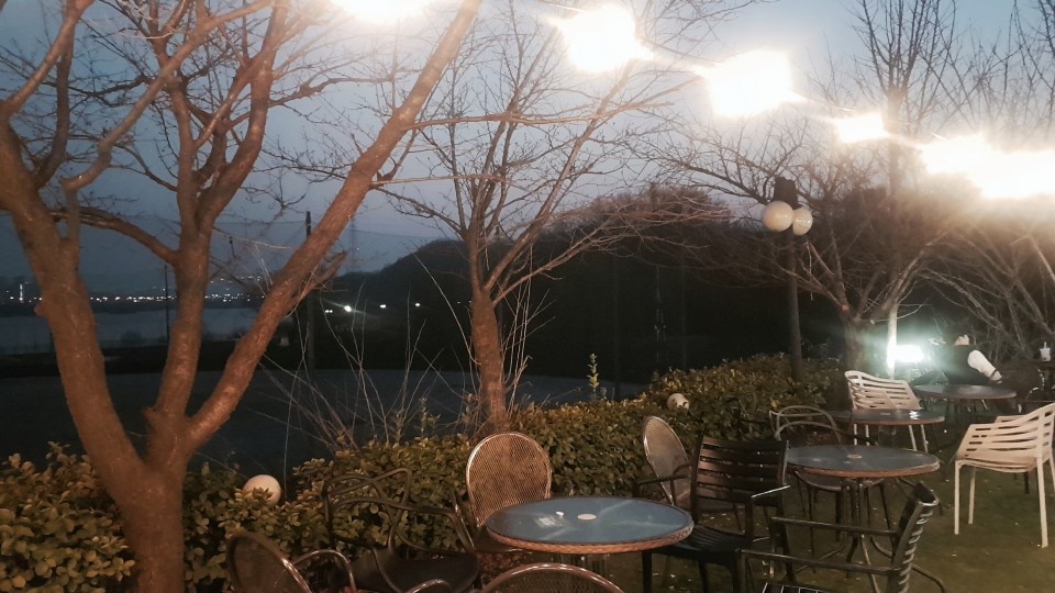 낮에는 이곳에서 다들 흡연하시던데 저녁에 모닥불을 때워 주십니다 산책로도 있고 새벽5시까지 운영한다고 하니 새벽드라이브코스로도 제격인듯 합니다 감성카페로 또 서울근교바람쐬러 나오기 충분히 좋은 카페.