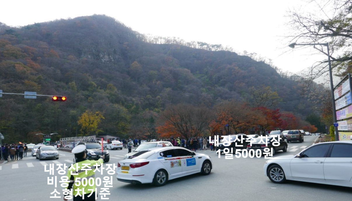 내장산 주차장있습니다 무료주차장의 경우 (5주차장) 주차하시고 2km가량 입구까지 걸어가셔야 합니다 올라가는길에 여러가지 먹거리들이 판매하고 있습니다 걷기 싫으시면 무료셔틀을 이용하실수도 있다고 합니다 내장산 유료주차장의 경우 사람이 많이 찾는 시기는 오전 9시경에 가도 주차하는것이 만만치 않다고 합니다 빠르게 주차하시려면 아침 일찍 가시는것을 추천드립니다 유료주차장 요금은 성수기 1일기준 5000원입니다 (경차 2000원 대형 7500원 )