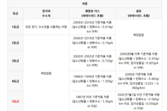 - 배출가스 5등급 차량 중 정상 운행이 가능한 차량만 접수 및 지원금 수령이 가능합니다