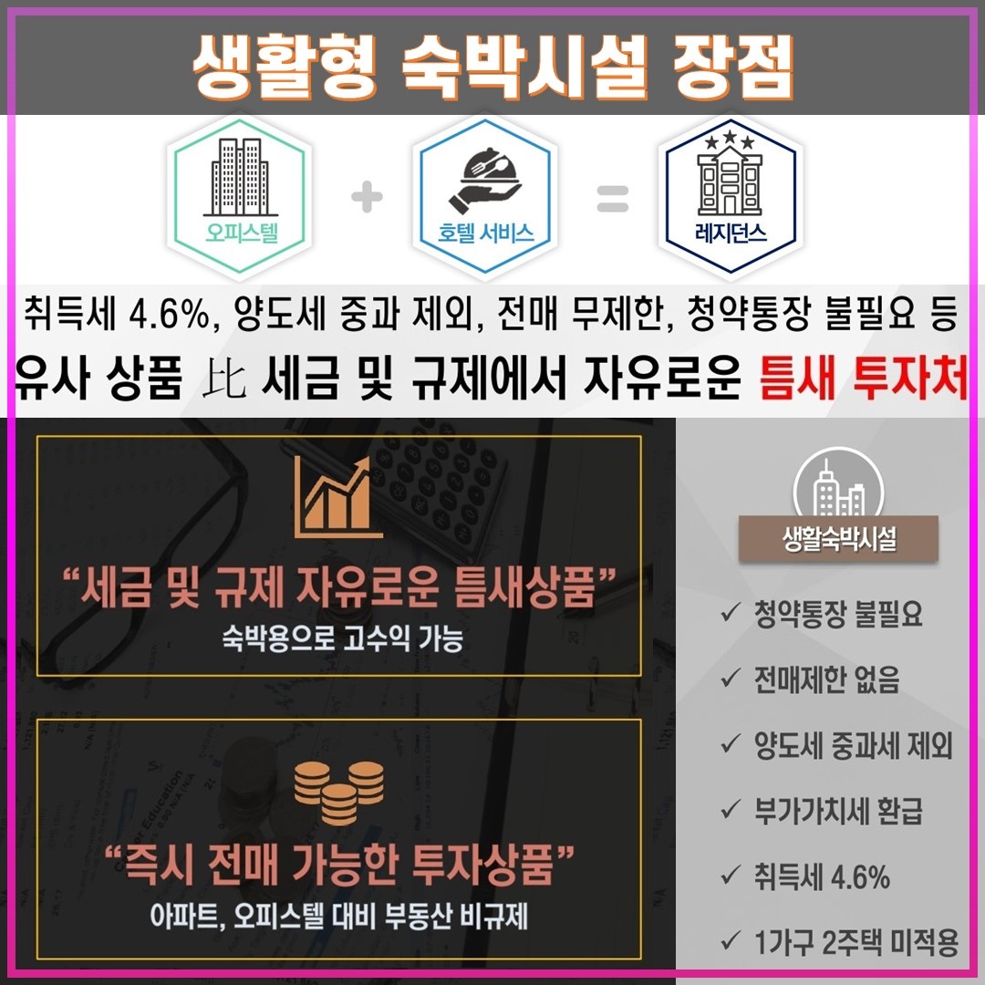 생활형숙박시설 다이아메르는 오피스텔과 호텔의 장점만 두루 갖추고 있기 때문에 투자가치가 월등합니다
