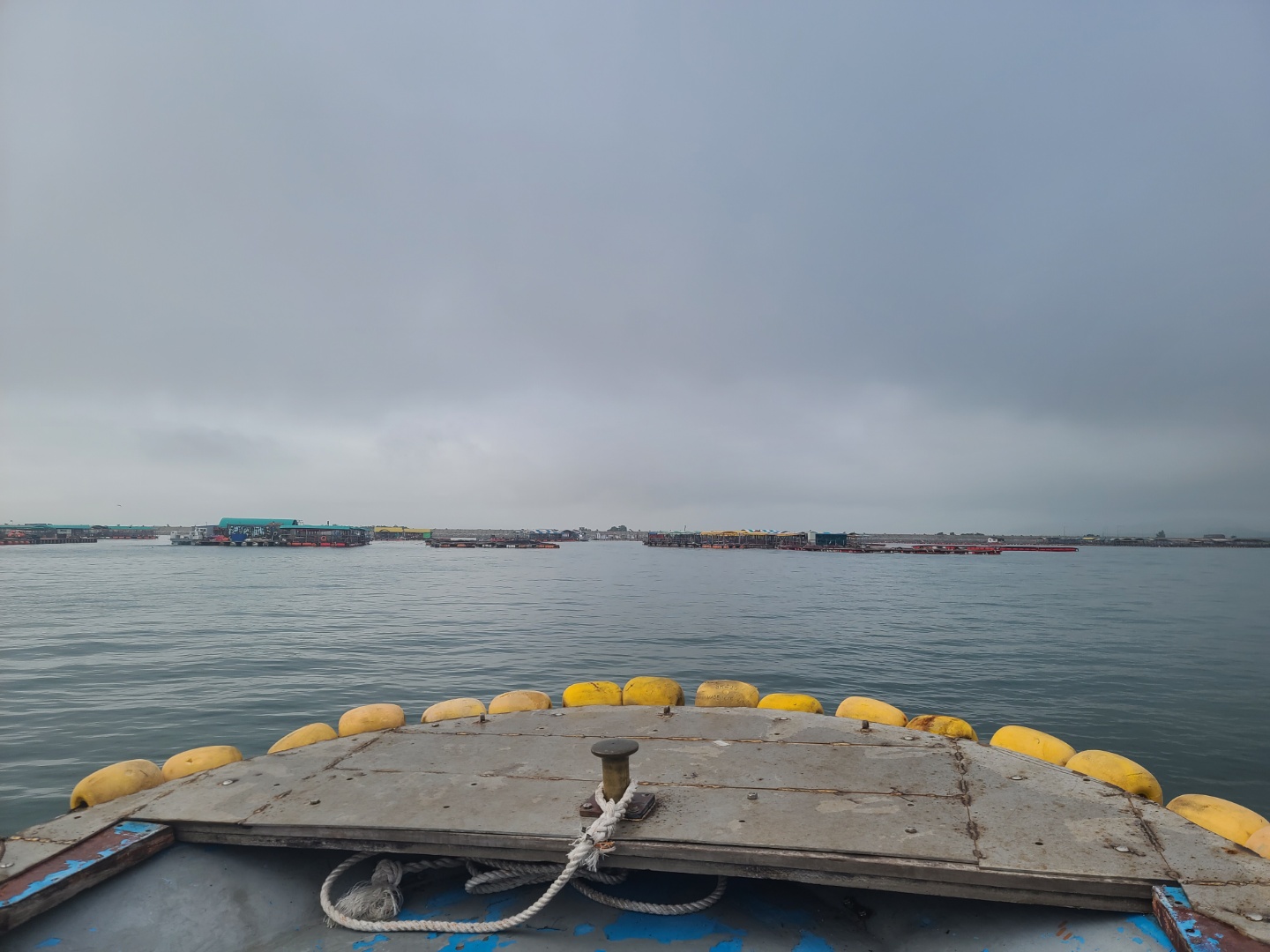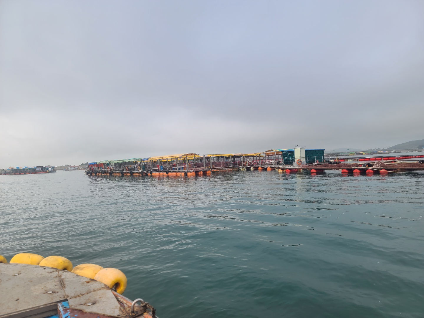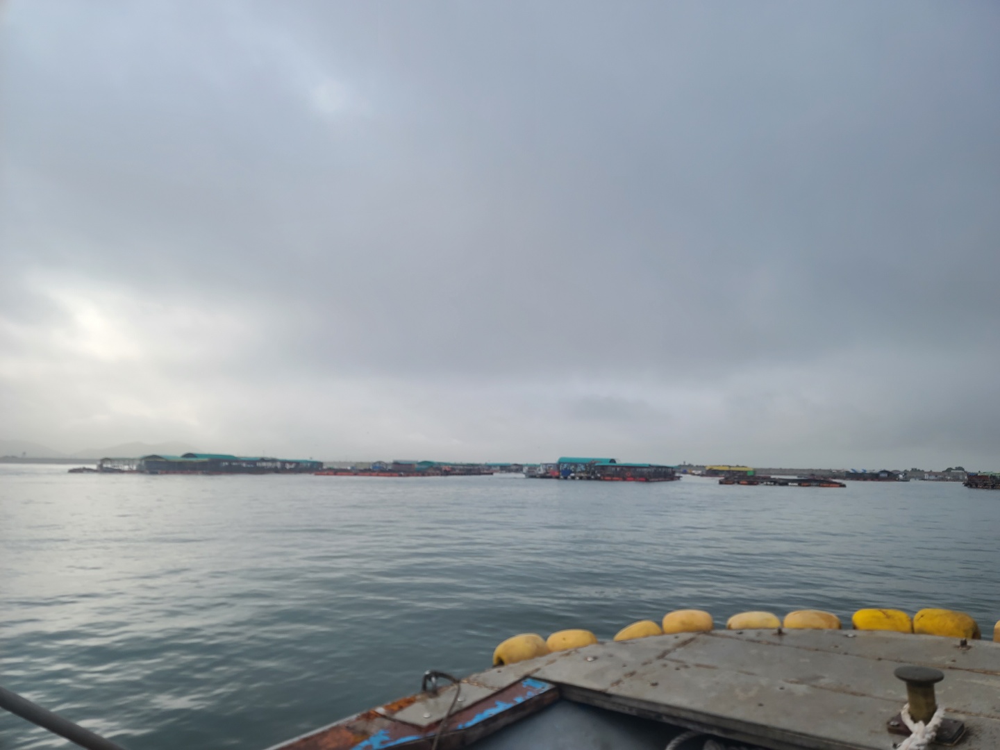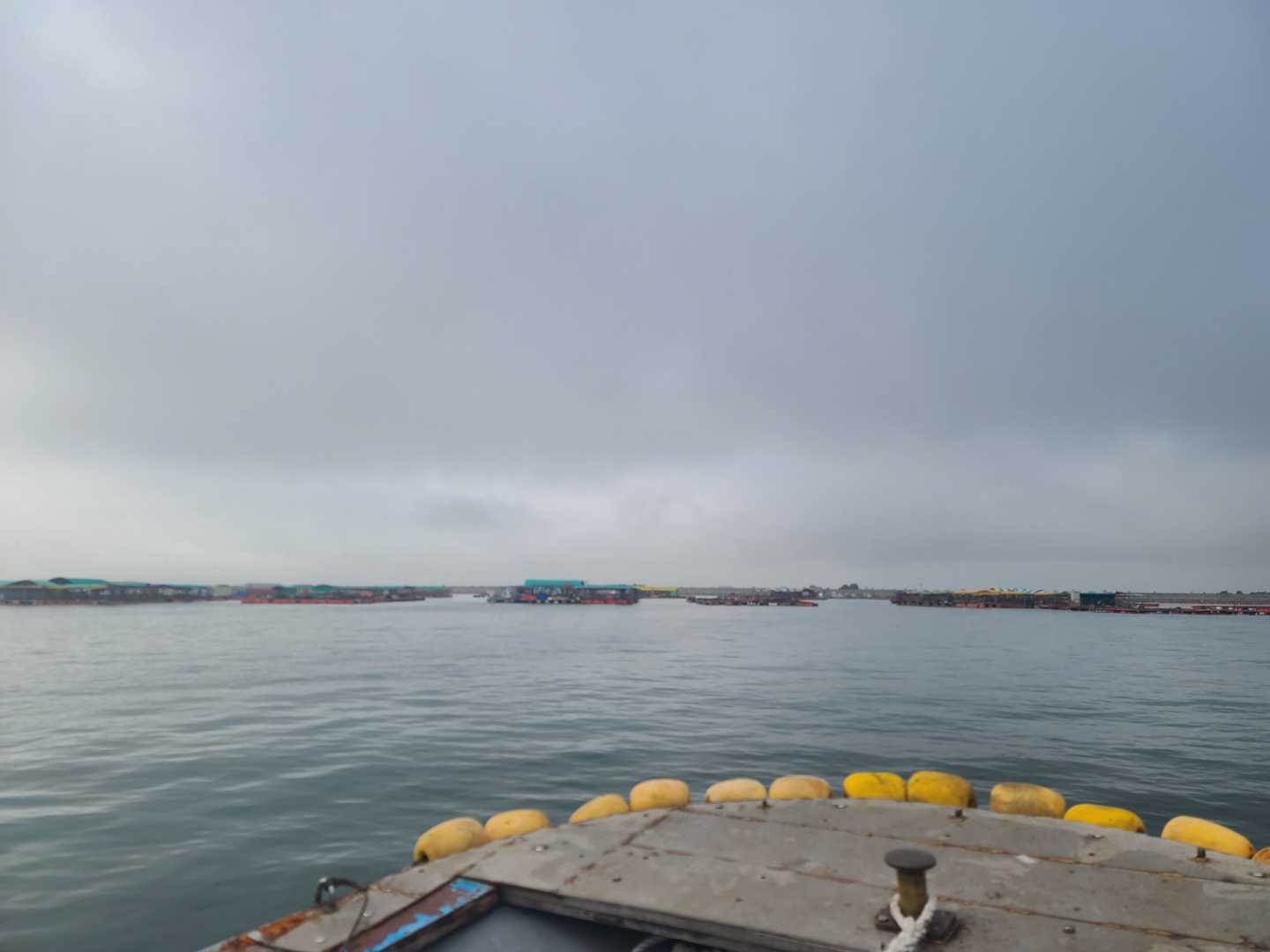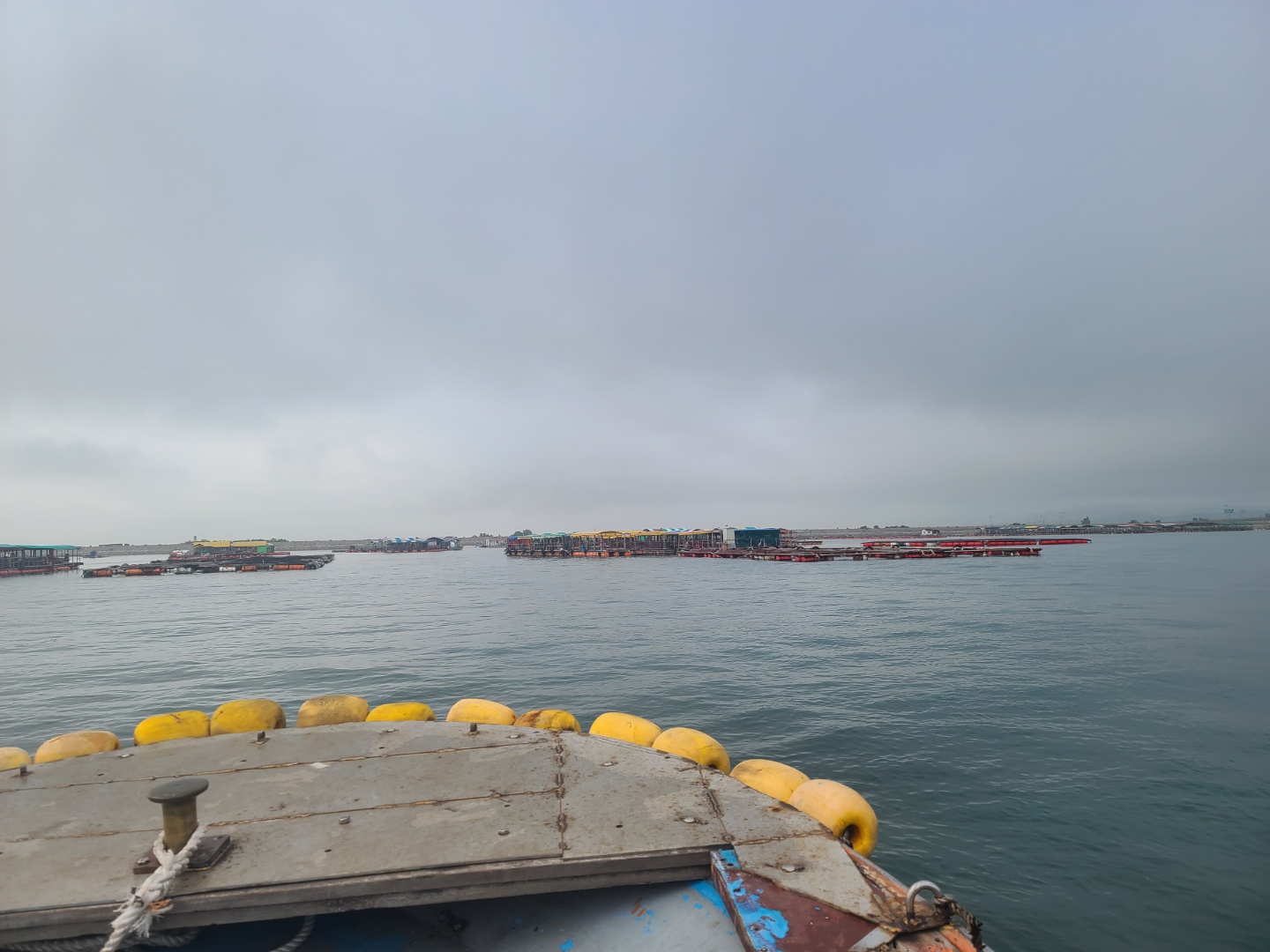 배를 타고 조금 나가니 좌대낚시가 보이기 시작했어요 배는 5분 정도 타고 들어갔던 것 같아요