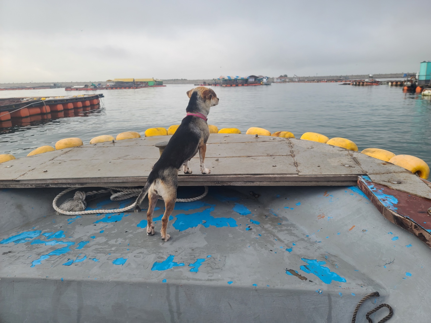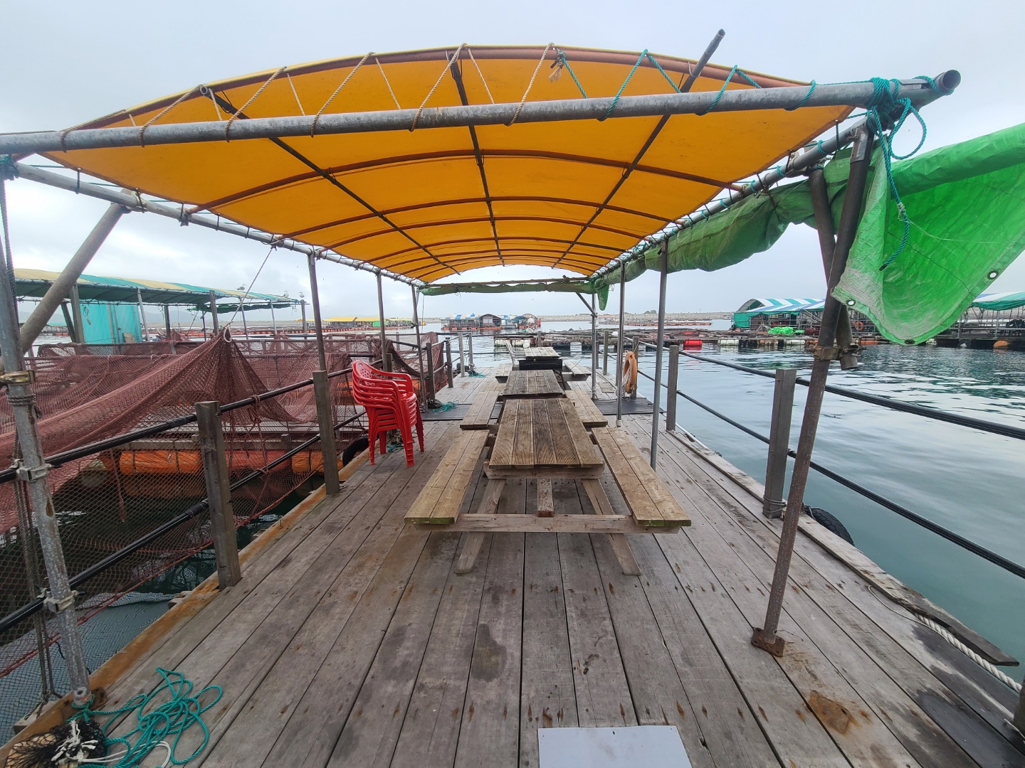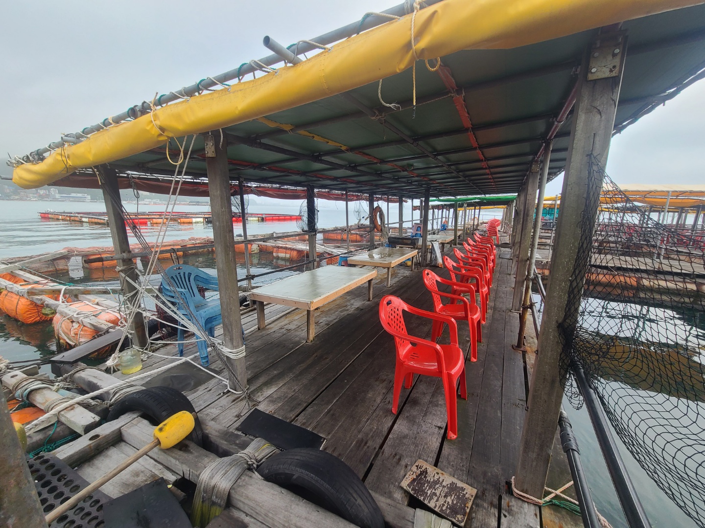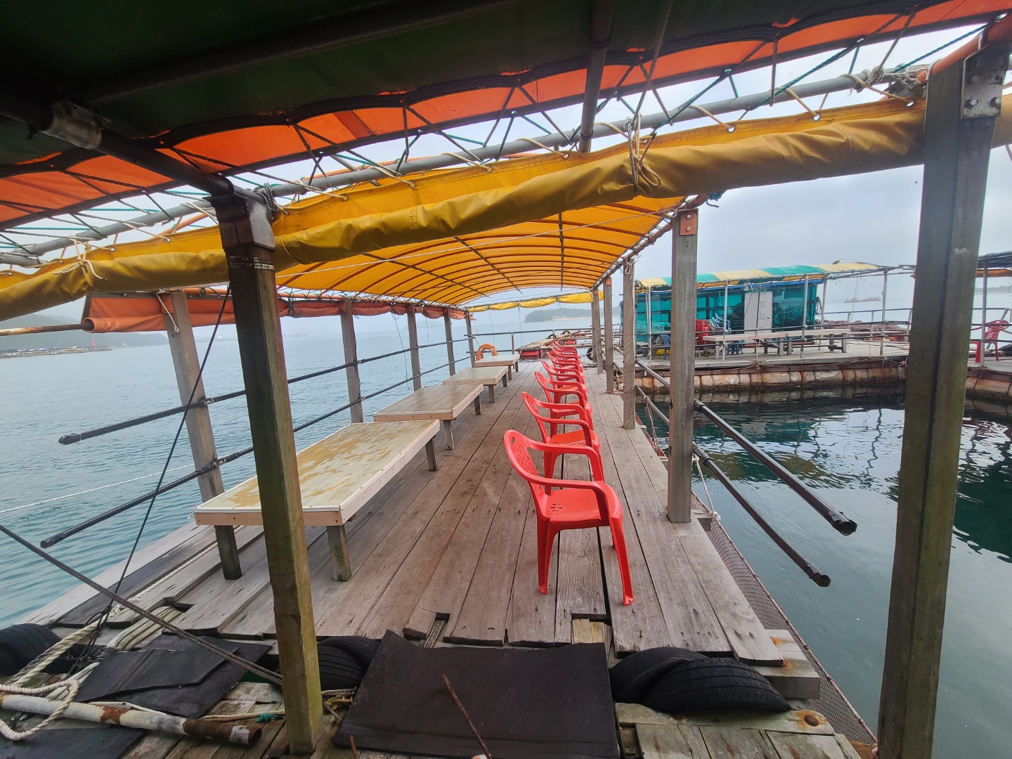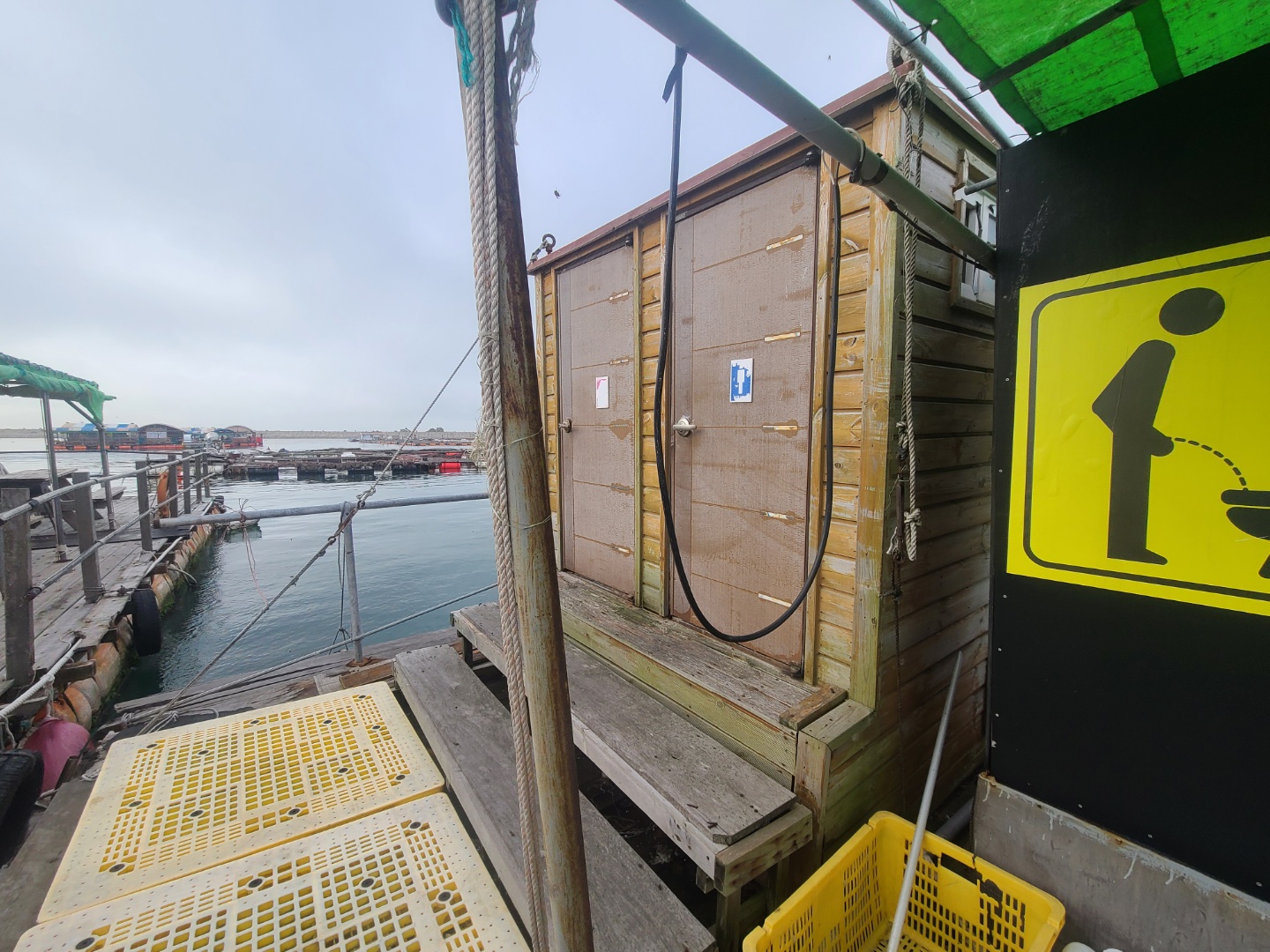 배를 타고 조금 나가니 좌대낚시가 보이기 시작했어요 배는 5분 정도 타고 들어갔던 것 같아요