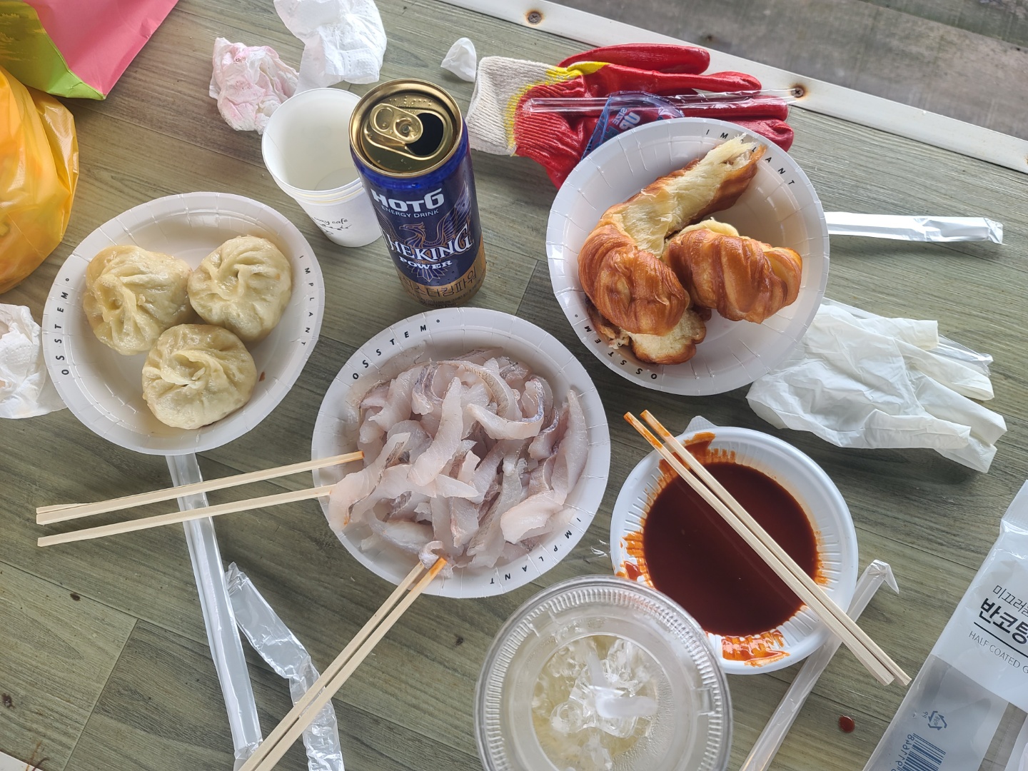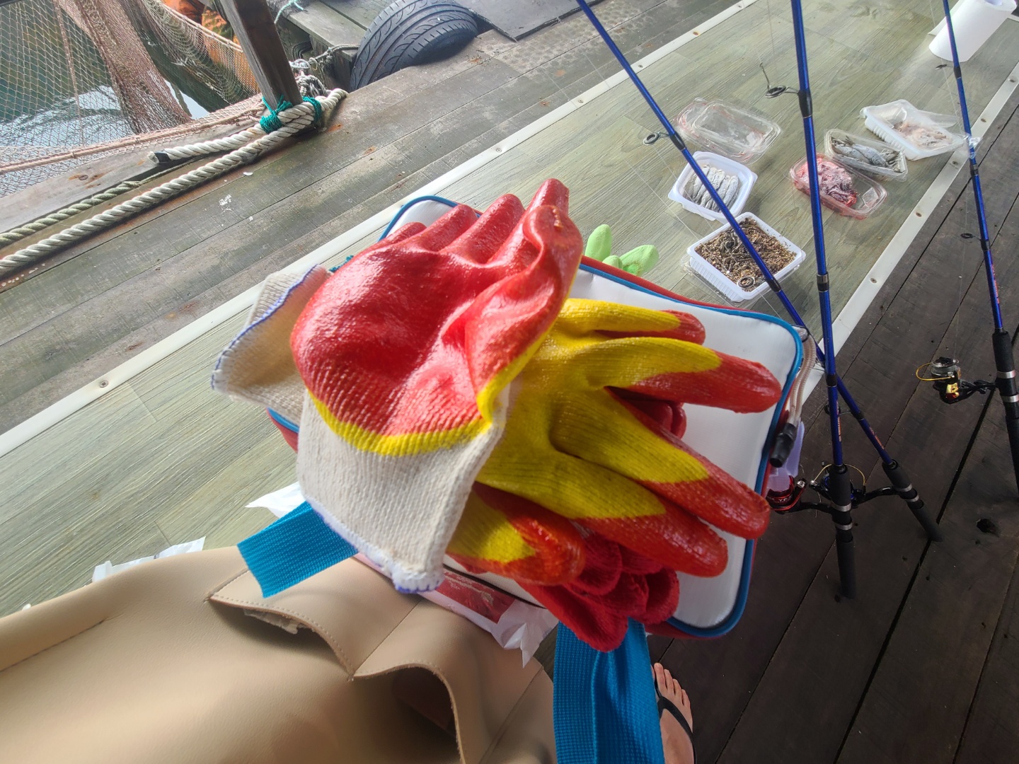 물고기를 손으로 만지기 두려워 장갑을 엄청 준비해 갔습니다