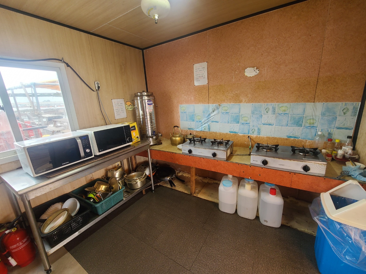 한쪽에는 설거지 할 수 있는 공간도 마련되어 있었고요
