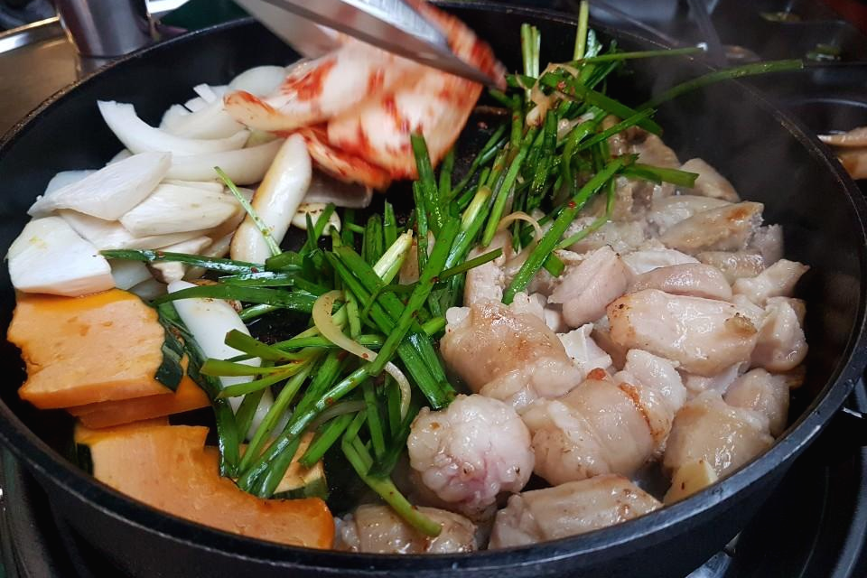 불판이 새롭게 바뀌었습니다 개인적으로 바뀐 불판이 마음에 들었습니다 중량은 초벌전 중량이라고 하는데 500g맞는지는 잘 모르겠습니다 불판 탓인지 모르겠습니다 제 느낌에 양은 확실히 줄었습니다 곱창 막창 대창 염통이 들어있고 단호박, 떡, 마늘, 양파, 버섯등이 같이 들어있습니다 먼저 염통이 익을 즈음 일하시는 분이 오셔서 불쇼를 보여 주십니다 불쇼를 하는 이유는  비린내를 없애준다고 하네요