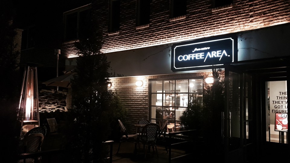 카페 외관이 나름 멋스럽습니다 낮보다는 어둑해지니 조명과 함께 더욱 멋있어보이네요