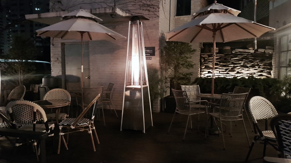 입구에는 테라스도 마련되어 있습니다 난방시설인지 조명시설인지..... 제가 방문했을땐 바람이 좀 불어서 바깥에 앉으시는 손님은 아무도 없었습니다