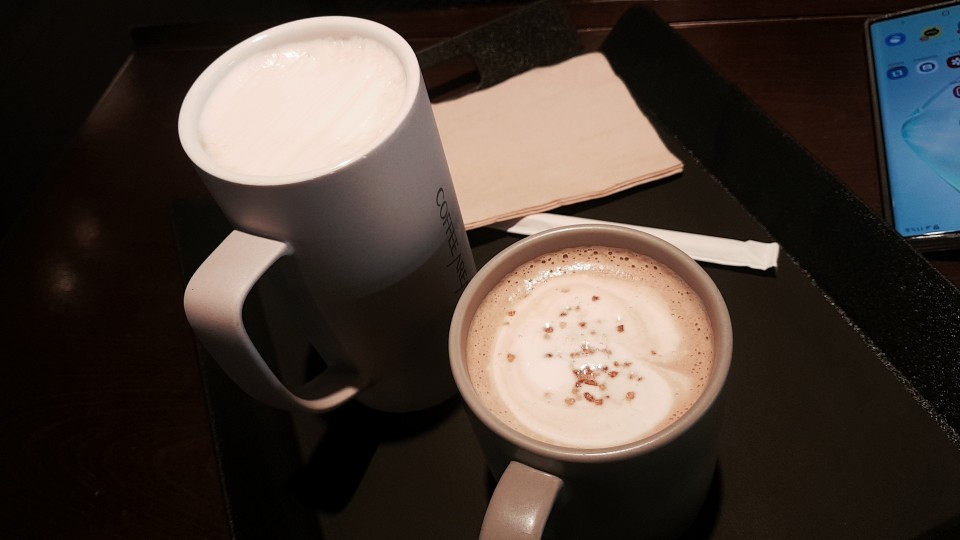 뷰맛집에서 커피맛은 그다지 중요하지 않은듯 합니다 주문한 아이스라떼와 토피넛라떼는 정당히 마실만 했던것 같습니다