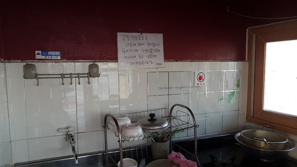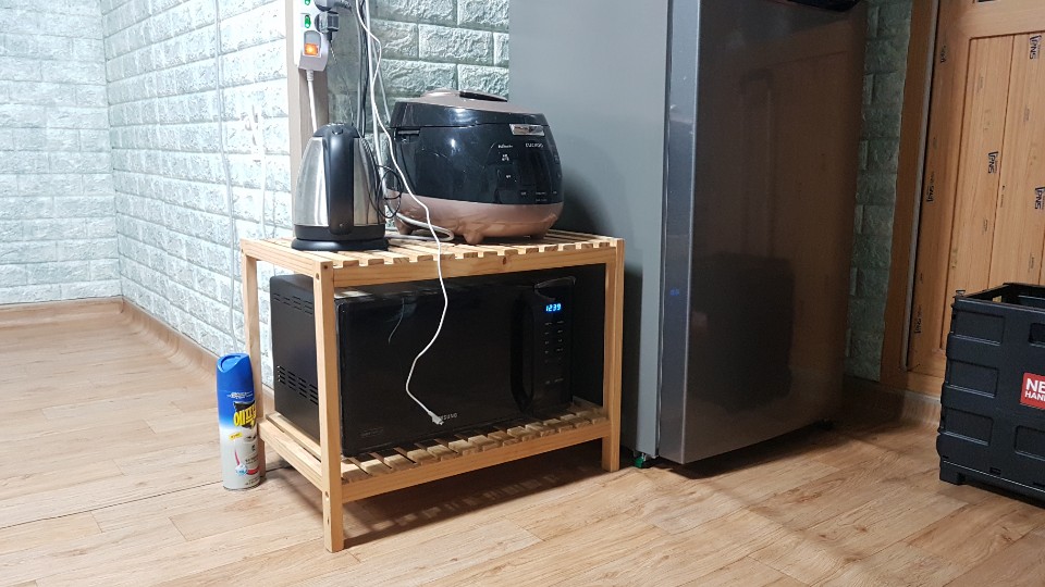 방안에 밥솥 전자레인지 커피포트 그리고 냉장고가 있었습니다 공용으로 이용 가능합니다