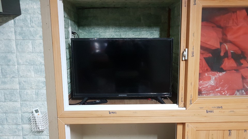 tv를 보지는 않았지만 tv도 있고 구명조끼도 넉넉하게 구비되어 있었습니다 바다위에 해상낚시터 해상펜션 이정도면 시설은 아주 훌륭하다는 생각이 들었습니다