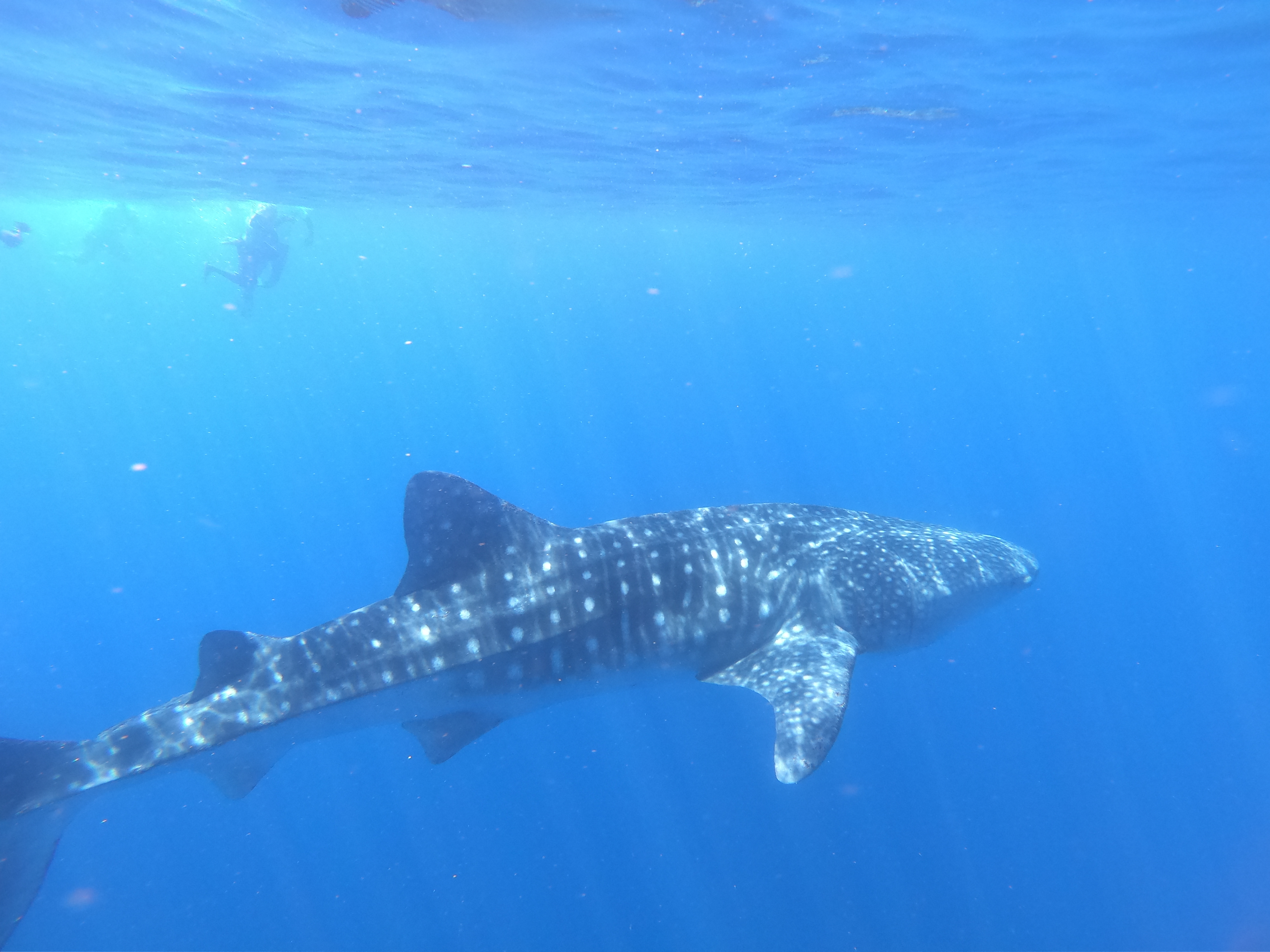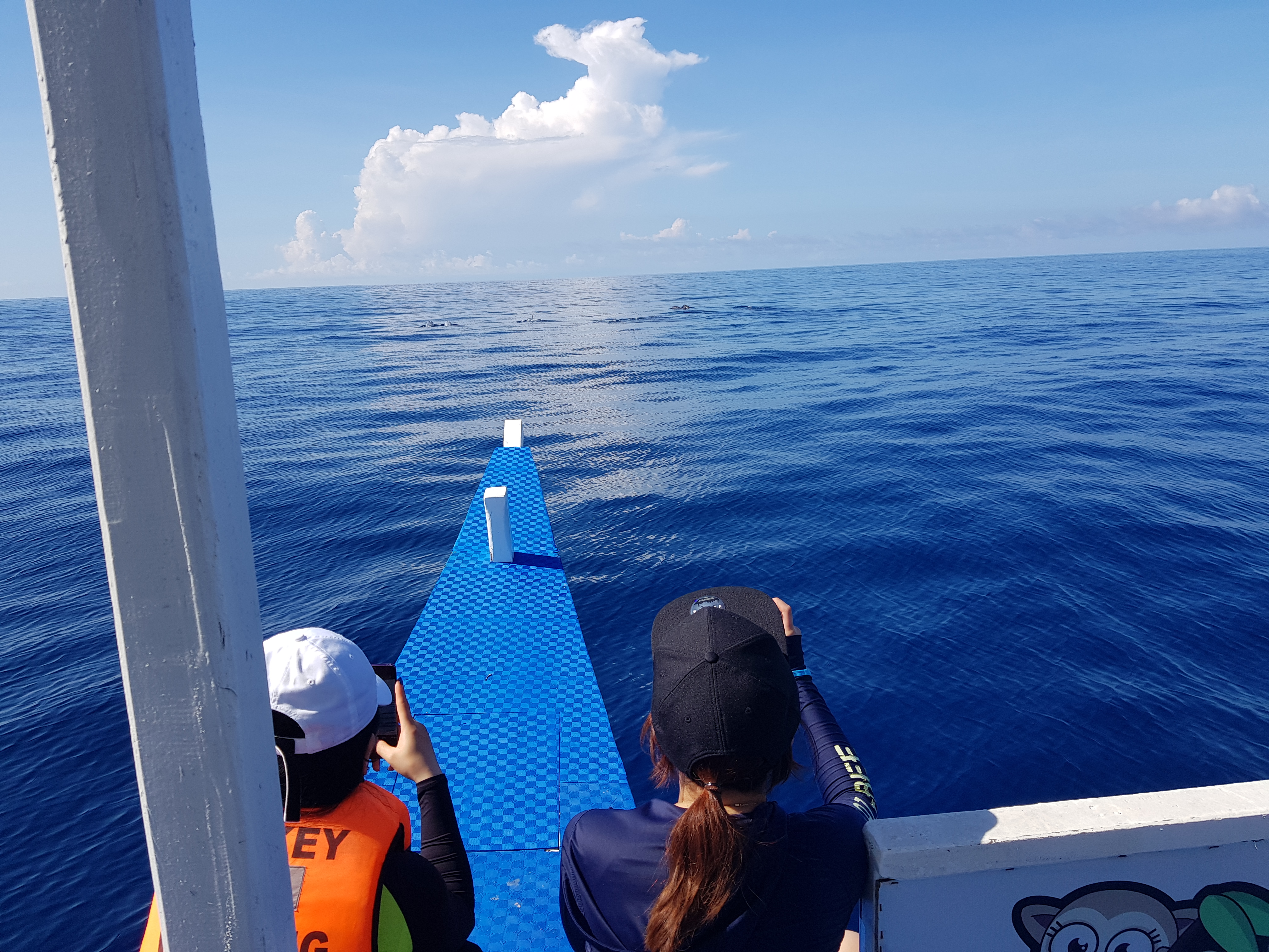 돌아오는 길에 야생 고래상어를 만났습니다 예전에 세부에서 고래상어를 보기 위해 4시간 이상 차를 타고 오슬롭 투어를 가서 양식 고래상어를 만났던 경험이 있었습니다 왕복 8시간.. 하... 그날 야생 고래상어와의 만납은 정말 행운이었습니다