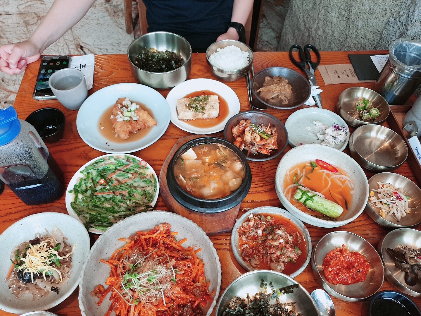 보시는 것처럼 기본 반찬 종류가 제법 많았습니다 잡채, 샐러드, 전, 생선 튀김, 부침, 양념 꼬막, 가지, 콩나물, 젓갈 기본 반찬만으로 밥 한 그릇은 이미 뚝딱 하 실 수 있습니다 메인 메뉴인 꼬막무침이 조금 늦게 나오는 많이 못 먹은 기억이 나네요 전오히려 메인 꼬막무침보다 다른 밑반찬들이 더 맛있었어요