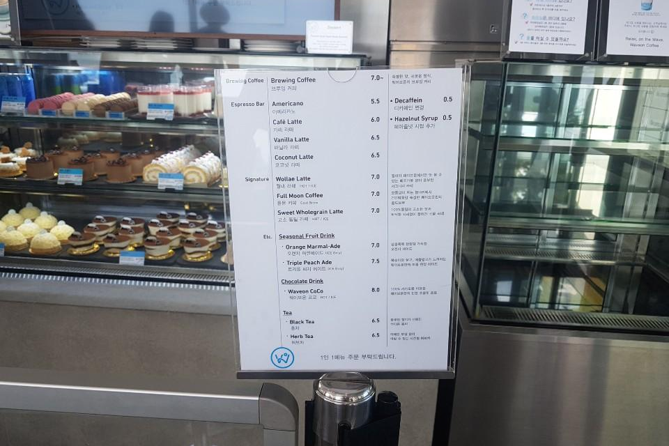 카페 웨이브온 메뉴 가격 볼게요