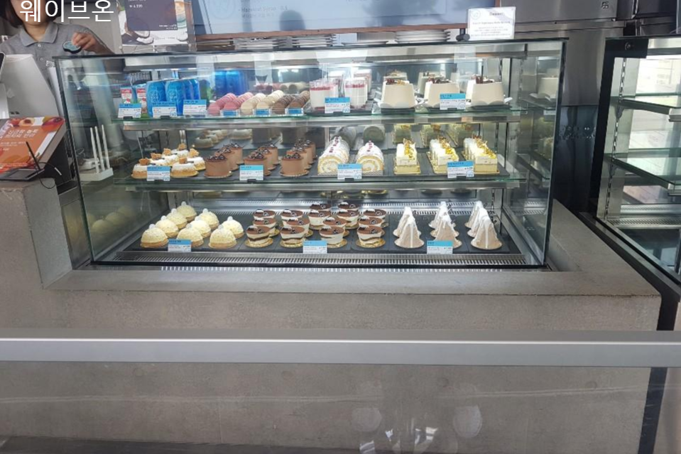 애써 줄을 만들기 위해 입 출구 통로를 만들기 위해 1층에는 웨이브온 커피 제품들을 진열해 두었는데 눈이 가지는 않았습니다 이 카페에서 가장 좁고 답답해 보이는 공간이 아닐까 싶습니다
