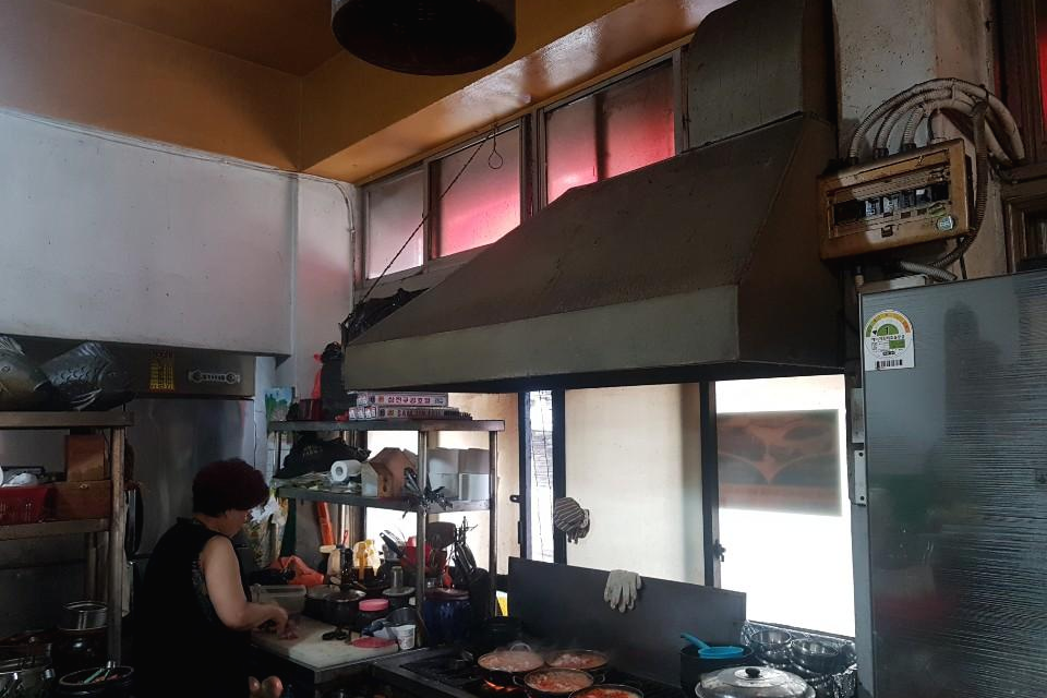 오픈된 주방에서 이모님 두 분이 정말 바쁘게 음식을 하십니다