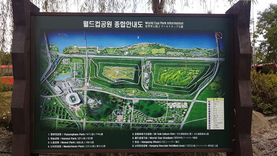 월드컵공원은 원래 한강변에 있는 난노와 지초가 풍요로운 난지도 라는 섬이었다고 합니다 온갖 꽃들이 피고 수많은 철새가 찾아오는 생태의 보고였습니다 그러나 1978년부터 15년간 서울시민의 쓰레기 매립지 역활을 해오면서 약 1억 4천만톤 규모의 세계에서 가장 높은 쓰레기 산으로 바뀌게 되어 파리 먼지 악취가 많고 메탄 가스와 침출수 등이 흐르는 불모의 땅이 되었습니다 이런 난지도에 1993년 부터 쓰레기 매립을 중지하고 1996년부터 안정화 사업을 추친했고 2002년 서울 월드컵 경기장이 상암동 으로 결정됨에 따라 2000년 11월 부터 공원을 조성하기 시작하여 2002년 5월에 완료하였다고 하네요