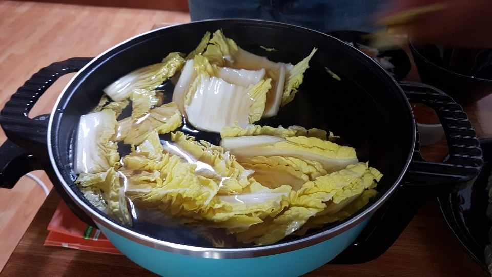 육수와 함께 물을 끓여주고 야채를 넣기 시작했습니다