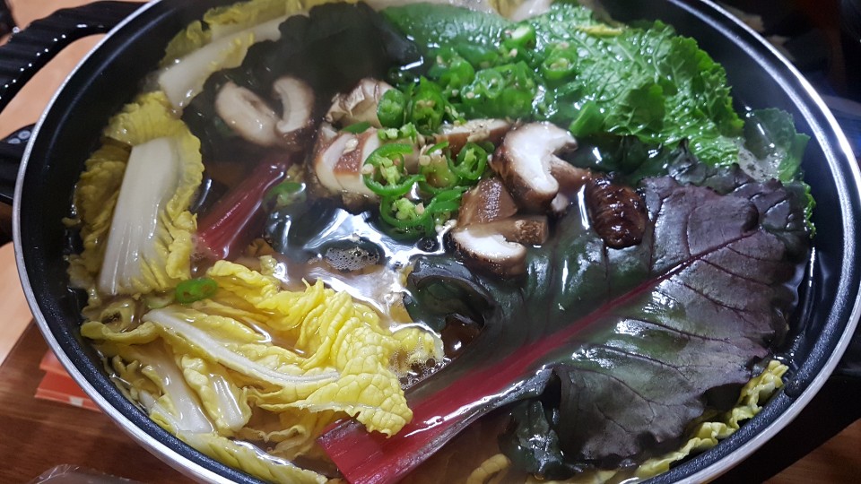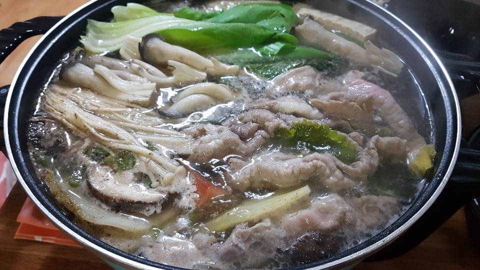 익은 야채와 고기까지해서 성인 세명이서 저말 배부르게 먹었습니다 육수는 끓을 수록 맛이 담백하니 더 맛있어졌습니다