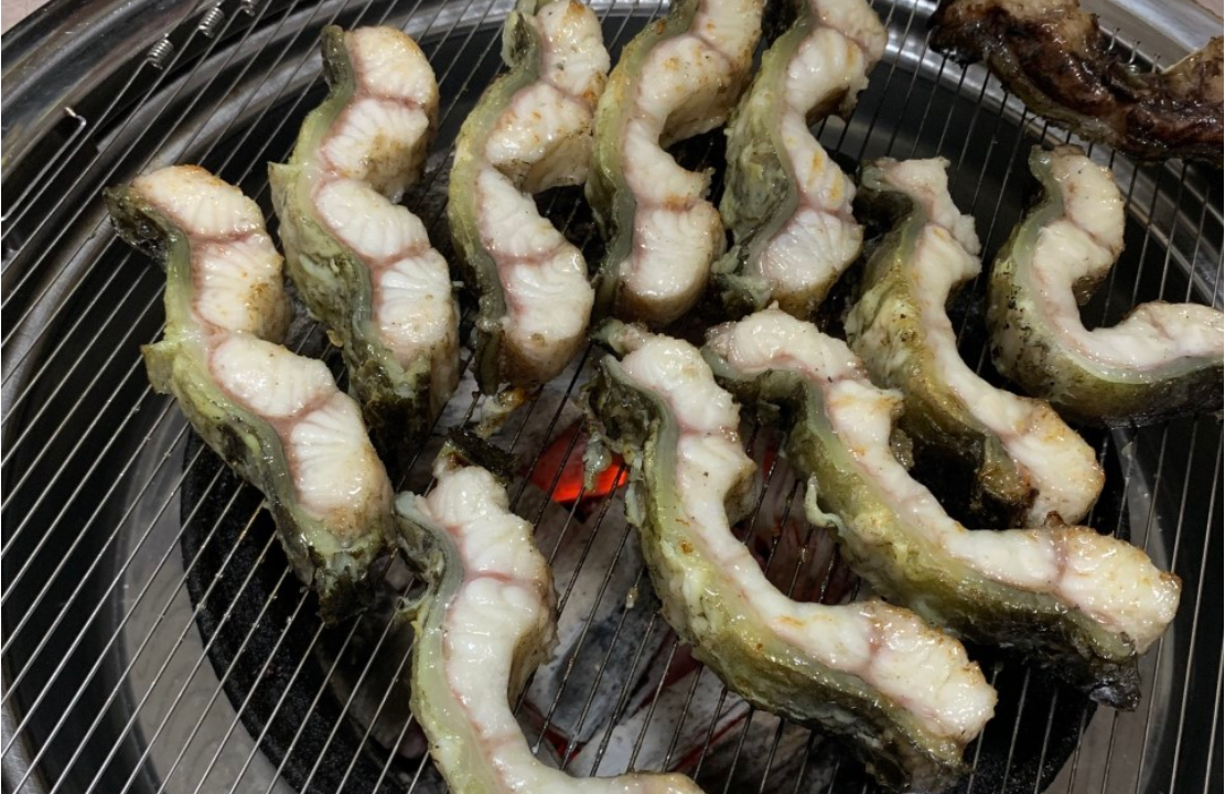 우선 크기에 한번 압도당합니다 밑반찬도 굉장히 맛있습니다 장어는 한번 초벌이 되어서 나옵니다 이곳의 고추쟁이가 정말 맛있는데 따로 판매도 한다고 합니다 깻잎에 싸먹어도 맛있고 무쌈에 싸먹어도 맛있고 장아찌 파채 무엇이랑 먹어도 꿀맛입니다 케일쌈이 정말 맛있습니다 사장님께서 추천해주신 방법은 케일쌈에 파채넣고 소스찍지 말고 바로 먹어보라고 하셨는데 대박입니다 장어는 느끼해서 솔직히 많이 못먹는데 계속계속 들어갑니다 초벌을 해오는데 거기서 불향이 맛을 좌우하는듯 합니다