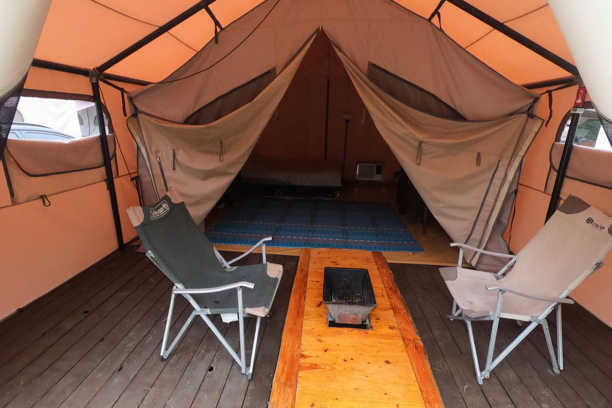 바닥에 깔린건 전기매트는 아니기고 일반 캠핑매트 돗자리 입니다 안에서도 식사 할 수 있도록 테이블이 마련되어있었습니다