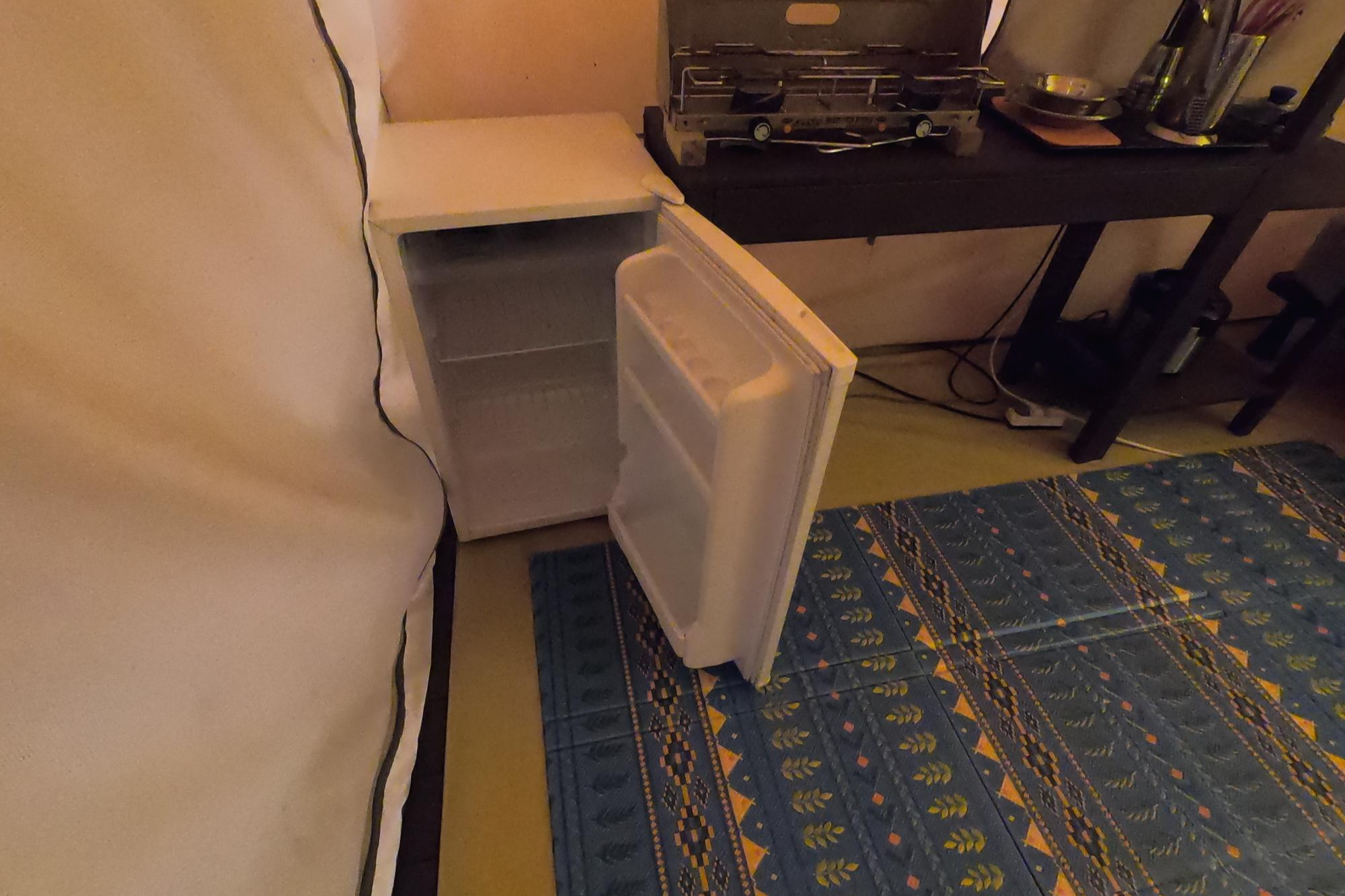 미니 냉장고가 있습니다 냉동고도 있는데 냉동고 기능은 하지 않았습니다 워낙 술을 시원하게 마시는 걸 좋아해서 술은 꼭 냉동실에 두는데 소용이 없었습니다 ( 미니냉장고도 비싼게 아니라도 성능이 괜찮은 것은 얼음을 얼려줍니다) 결국 돌얼음을 사와서 술을 마셨습니다 냉장고가 많이 시원하지 않아서 불편한 부분은 아니었지만 조금 아쉬웠습니다